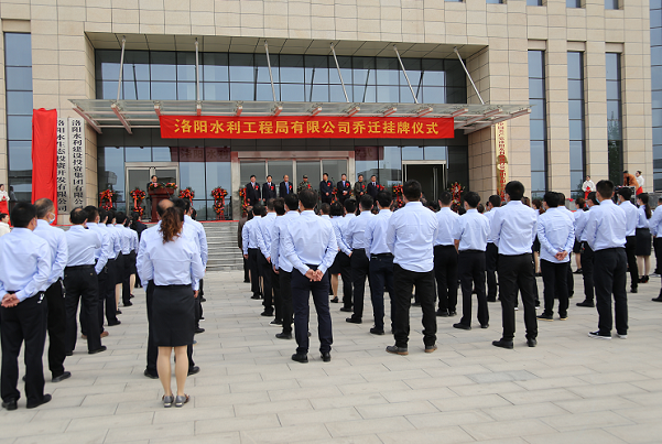 春日的伊濱新區(qū),花紅柳綠,位于吉慶路的洛陽水務(wù)大廈沐浴著濃濃的春光,大樓內(nèi)外處處洋溢著喜慶歡快的氣氛。4月14日上午8時30分,洛陽水利工程局有限公司(以下簡稱公司)新辦公樓喬遷掛牌儀式在水務(wù)大廈前廣場舉行。