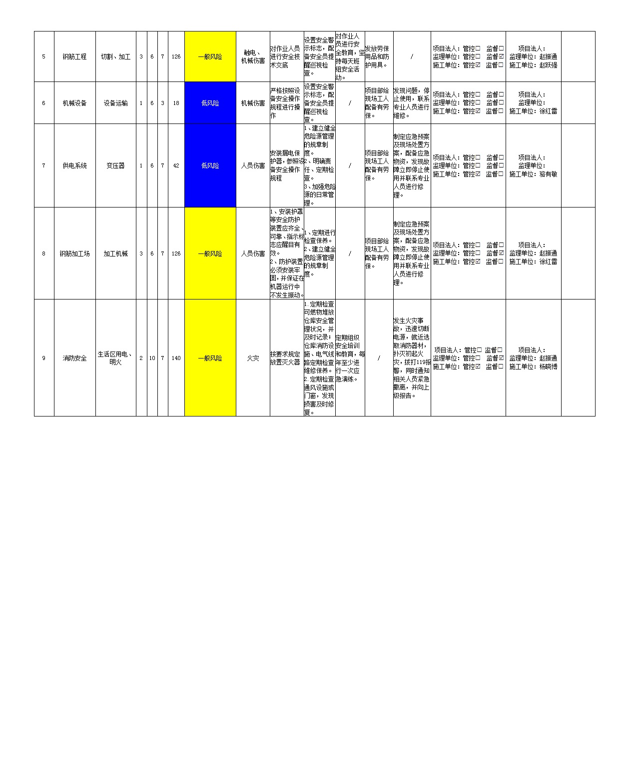 2024年一季度在建項(xiàng)目安全風(fēng)險(xiǎn)分級(jí)管控清單(小浪底南岸灌區(qū)工程施工7標(biāo))