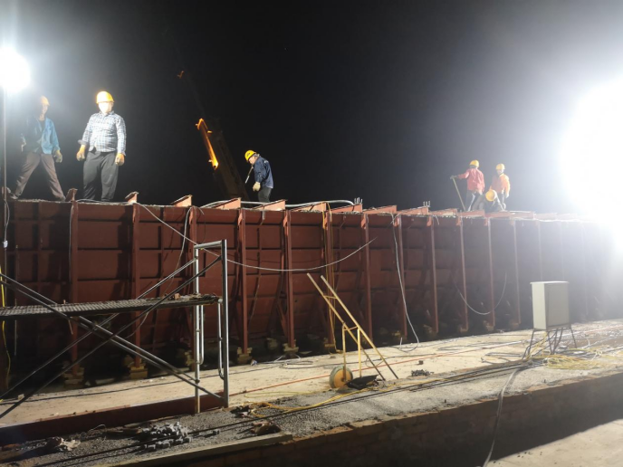 汝陽(yáng)項(xiàng)目四級(jí)堰夜晚加班澆筑上游鋪蓋