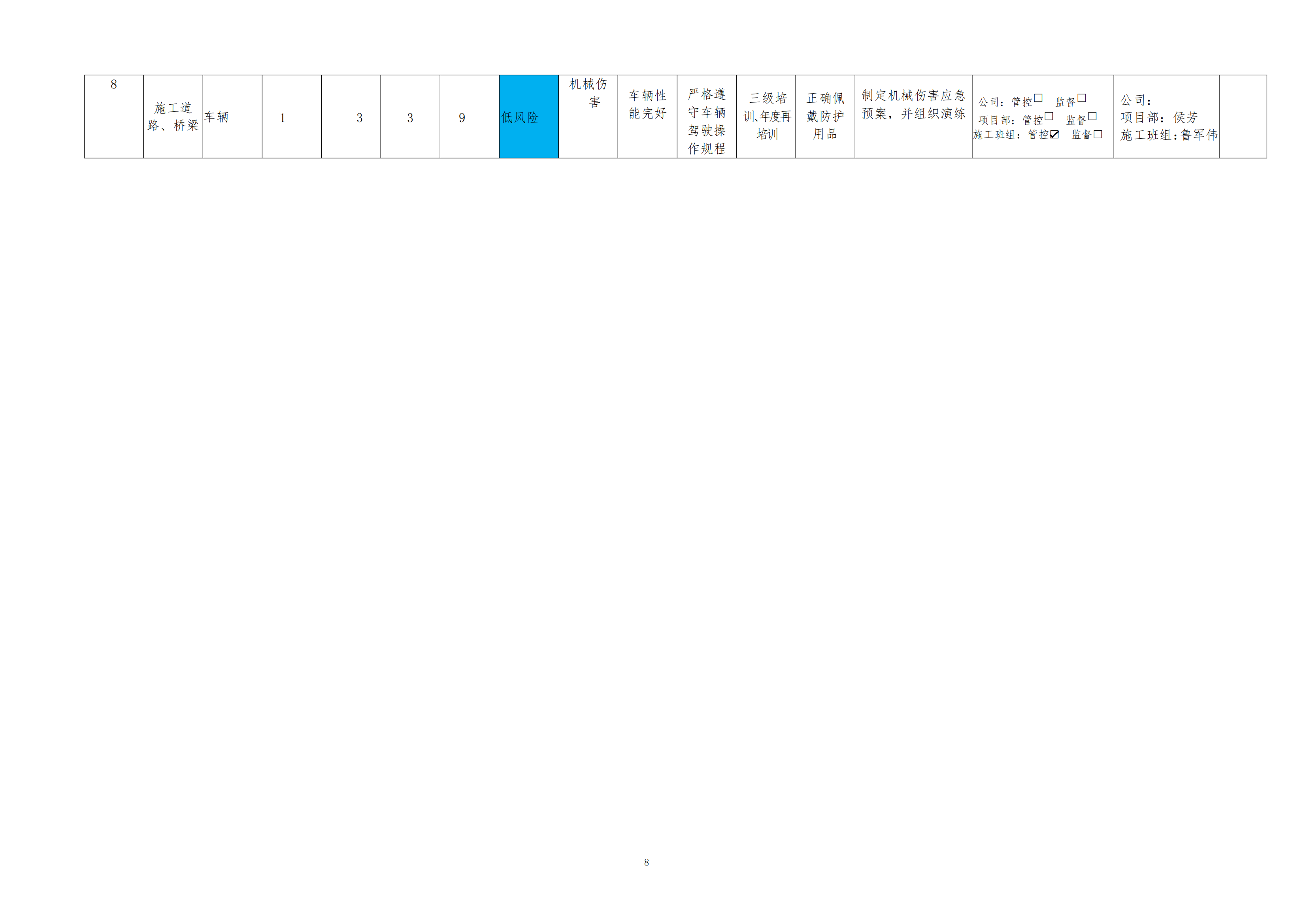 欒川縣新建水庫一期工程施工一標(biāo)段危險源風(fēng)險分級管控清單(3月)