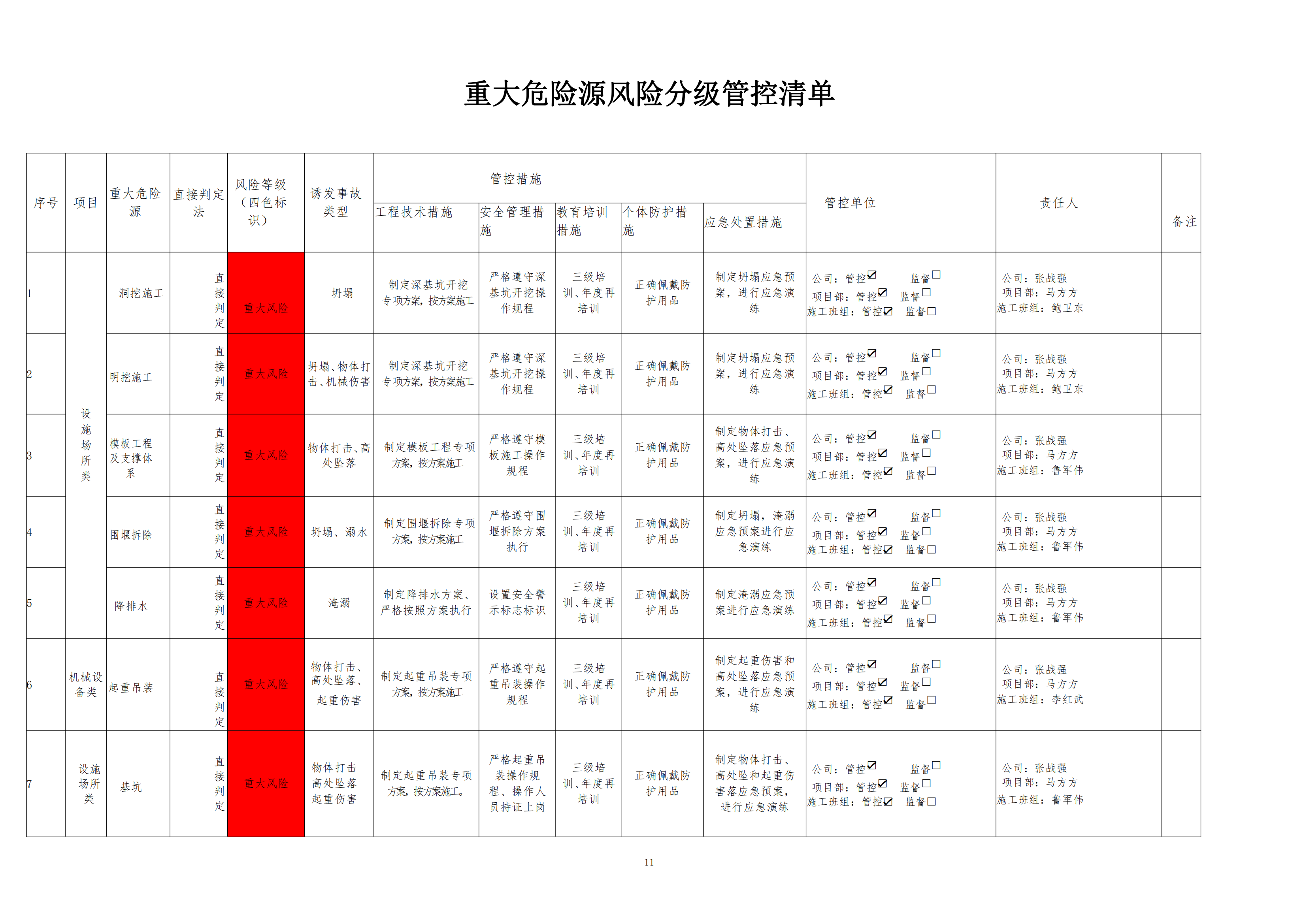 欒川縣新建水庫一期工程施工一標段危險源風險分級管控清單(4月)