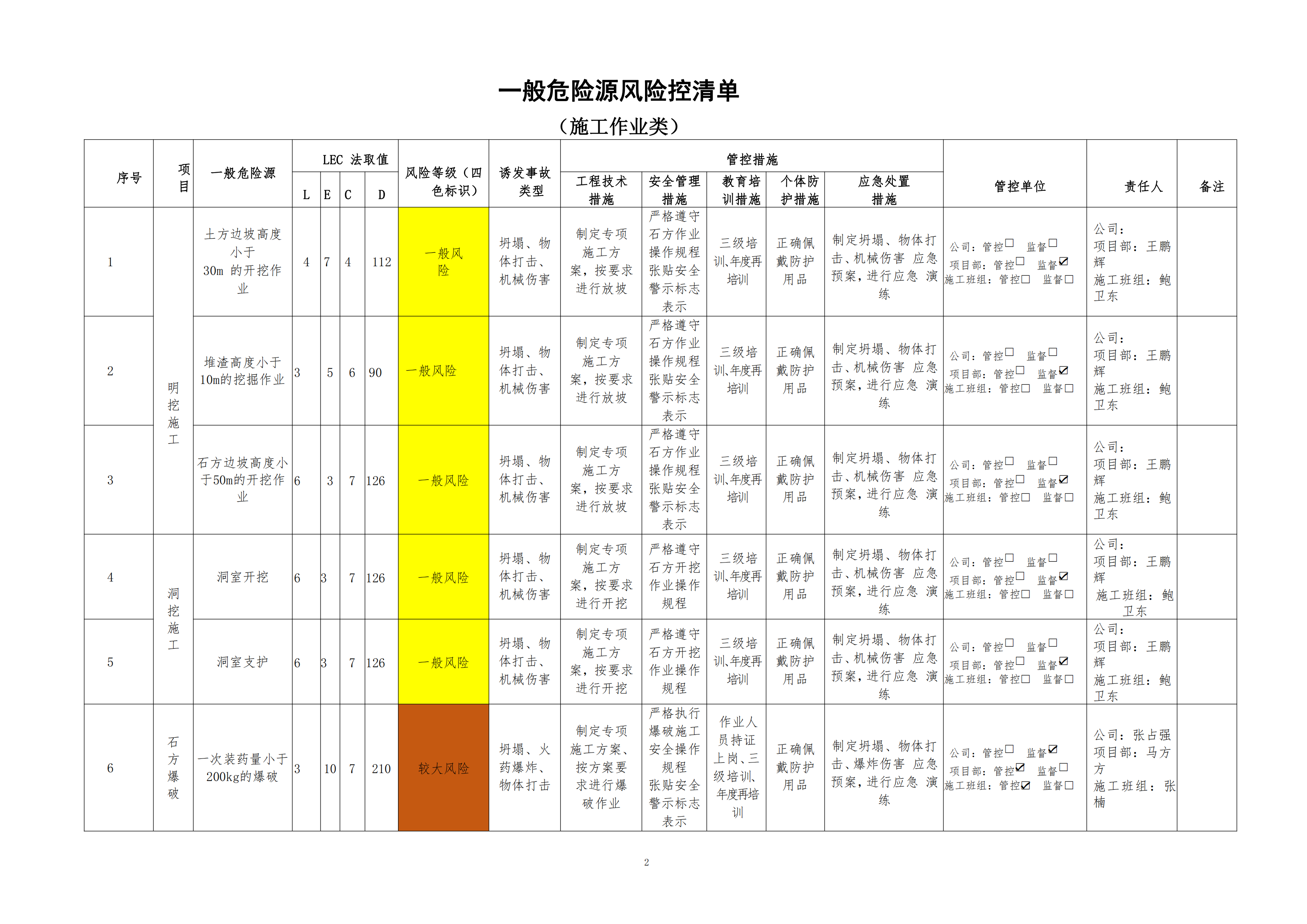 欒川縣新建水庫一期工程施工一標段危險源風險分級管控清單(6月)