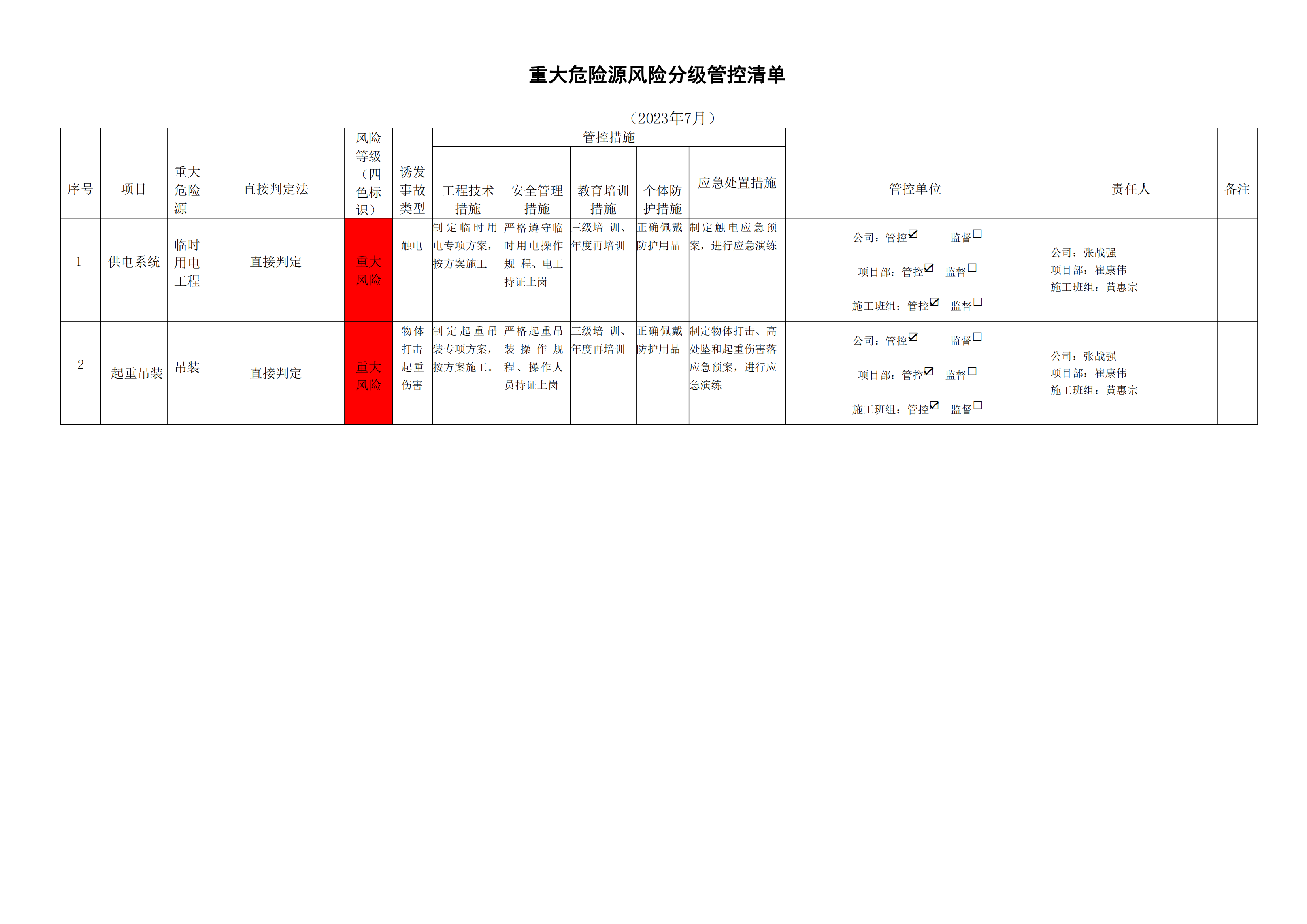 小浪底南岸灌區(qū)7標項目危險源風險分級管控清單(7月)